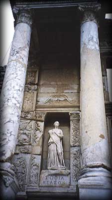 エフェスで一番特徴的な2階建ての建物がケルスス図書館。復元して建てられたものだが、2階部分の方まで細かな彫刻がびっしり。どうやって組み立てたんだろうかね。